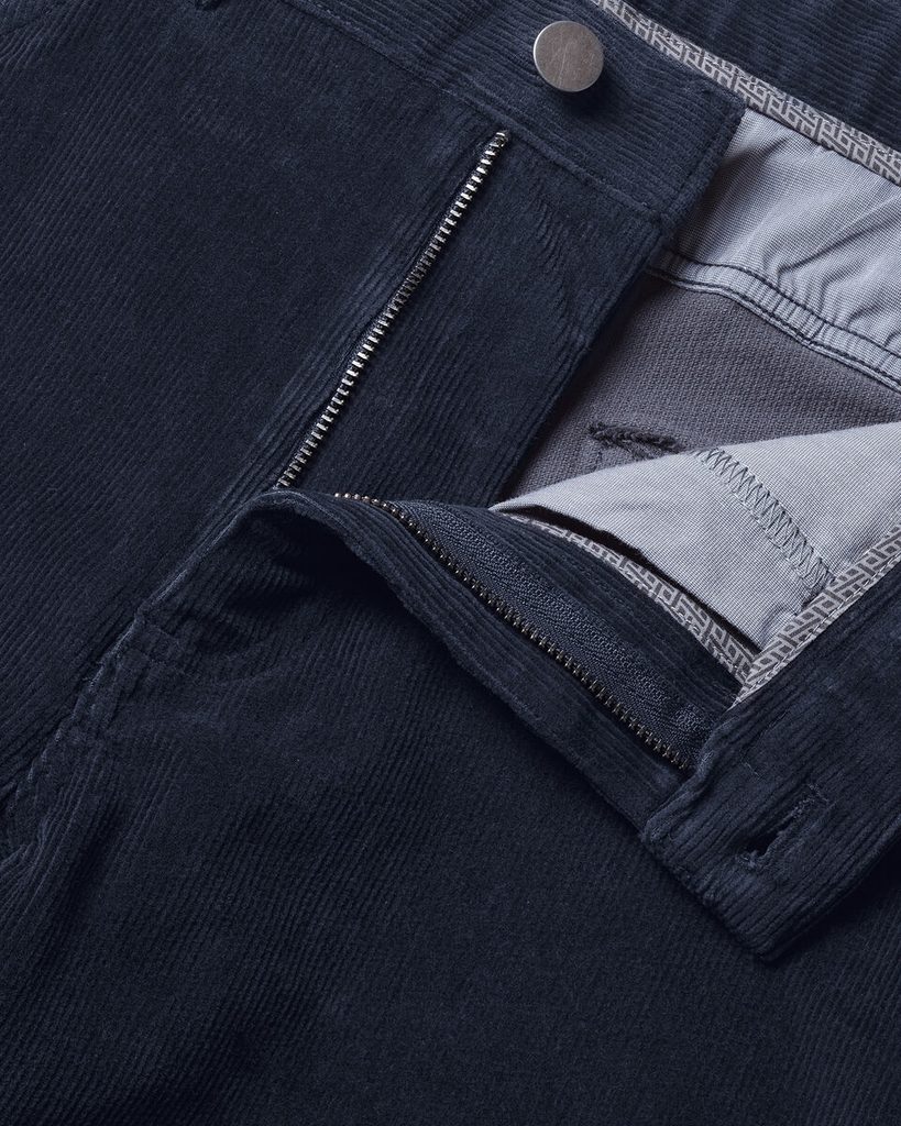 Pantalon confortable de style classique à cinq poches, confectionné en velours côtelé doux dans une teinte bleu foncé. Il allie l'aspect décontracté des jeans populaires à une impression de sophistication, ce qui le rend idéal pour le bureau ou un week-end à la campagne. Le choix idéal pour les mois les plus froids, lorsque vous apprécierez la chaleur et la douceur du tissu.