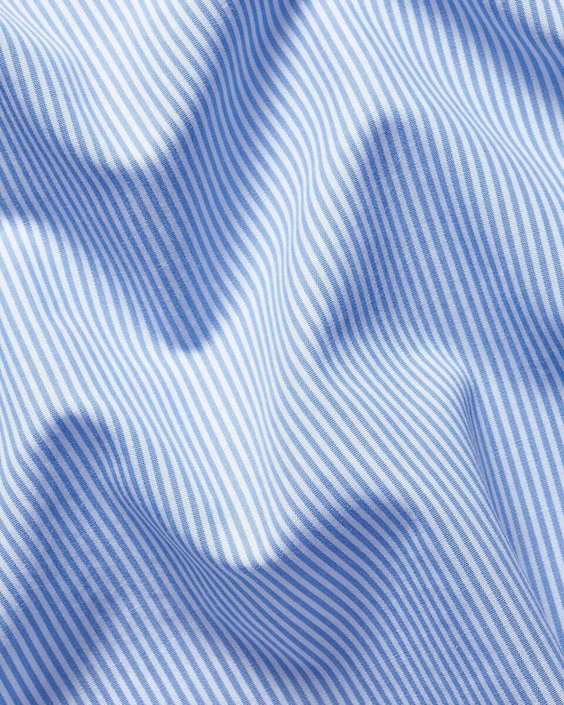 Chemise formelle à fines rayures bleu bleuet, alliant élégance et confort pratique. Grâce à son tissu extensible, elle suit vos mouvements sans vous gêner. Son traitement non-frayer vous garantit une apparence impeccable tout au long de la journée. Le compagnon idéal pour votre tenue professionnelle quotidienne, avec une touche de légèreté britannique.
