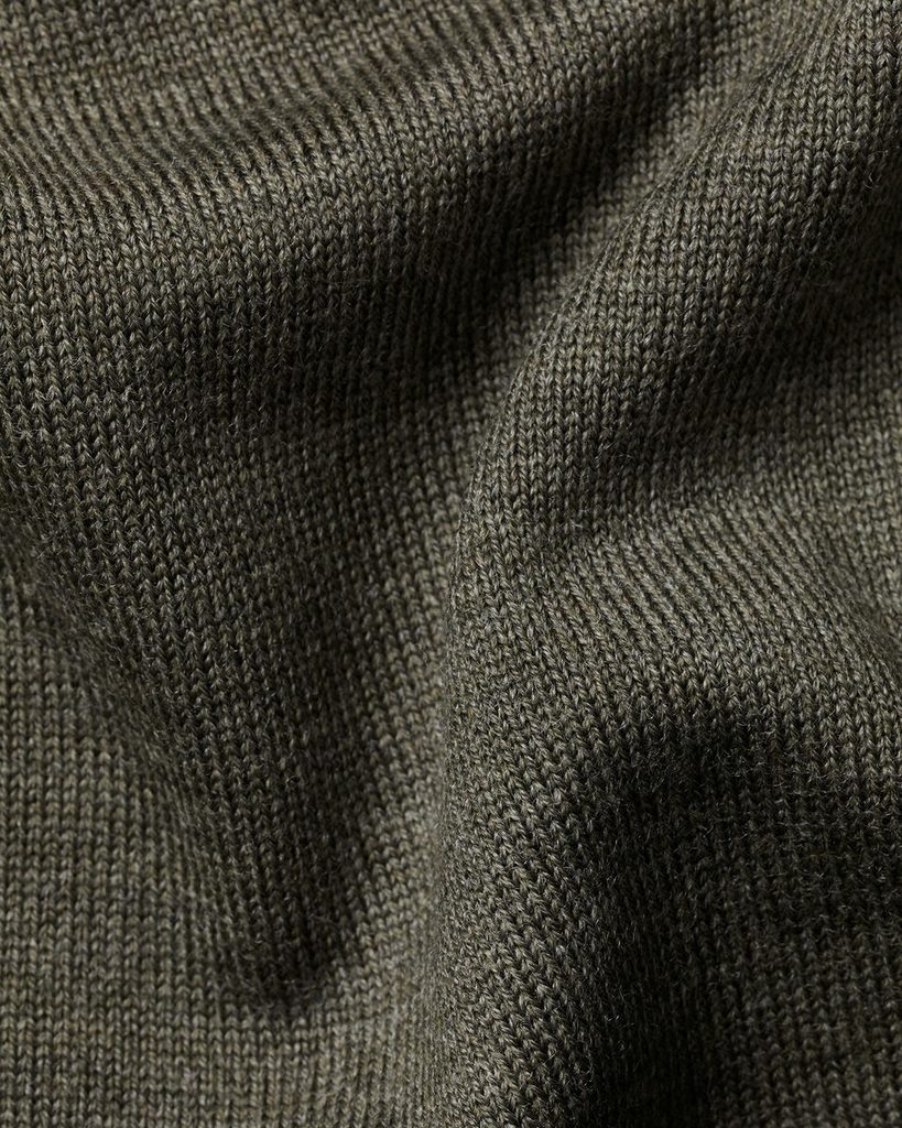 Fabriqué à partir de 100 % de pure laine mérinos certifiée Woolmark, qui garantit une qualité et une douceur exceptionnelles. Le tricot est naturellement élastique, résistant aux plis et aux odeurs, ce qui lui permet de rester frais même après avoir été porté pendant longtemps. La coupe est ajustée, mais pas serrée, et se termine par des bords côtelés pour un look parfaitement soigné.