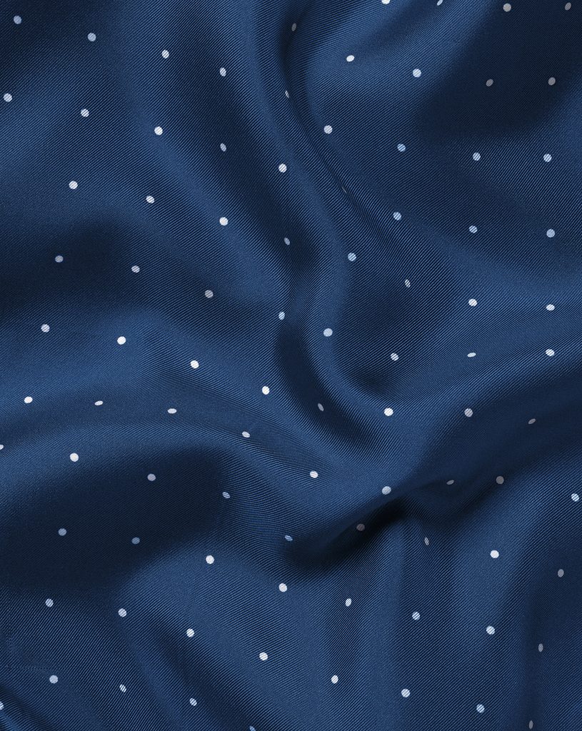 Un mouchoir en soie pour la poche de votre veste, qui est uniformément parsemé de petits points. Disponible en deux variantes inversées l'une par rapport à l'autre - le blanc et le bleu sont les couleurs primaires.