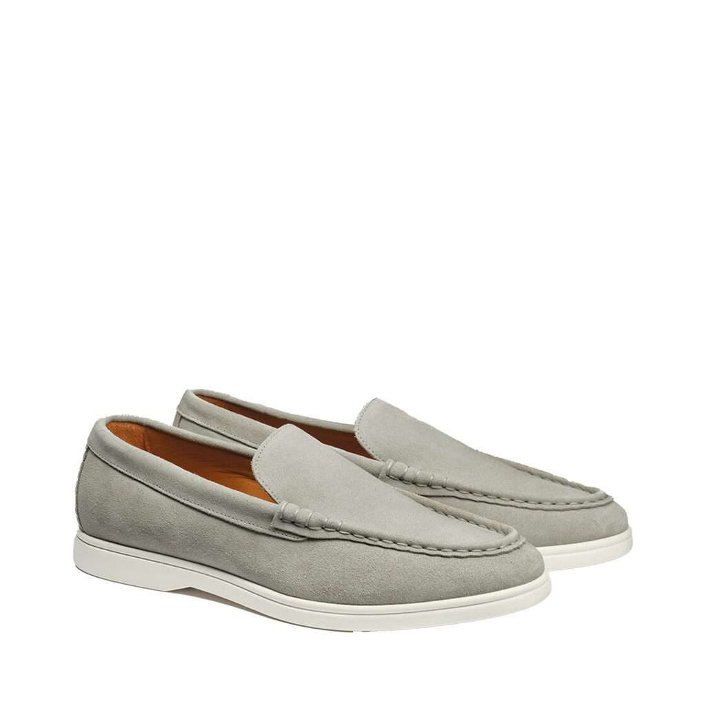 Des mocassins simples, sans franges, ni bandes sur le cou-de-pied, ni quoi que ce soit d'autre. Il s'agit simplement de bottes chaussettes classiques fabriquées en cuir de veau européen de qualité avec une finition en daim (pour ne pas avoir à s'embarrasser d'un entretien compliqué) et une semelle en caoutchouc durable. Le moderne rencontre le classique.