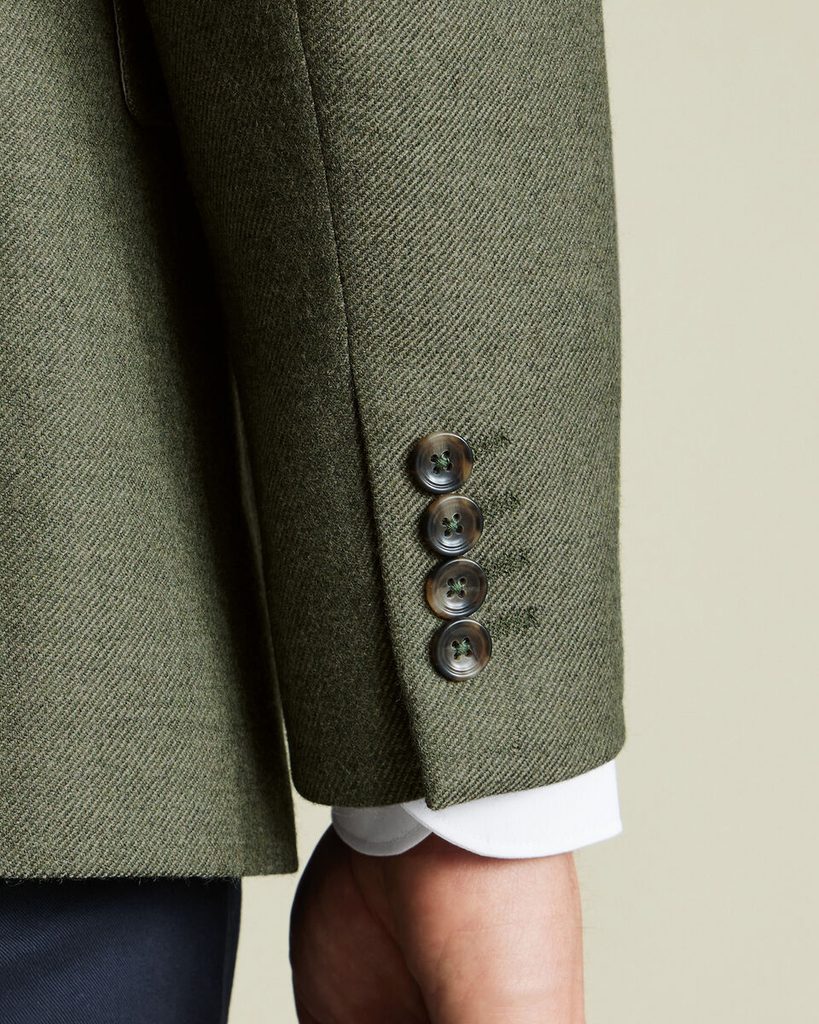 En outre, vous apprécierez les touches classiques de Charles Tyrwhitt: boutons en marbre de source durable (aucun rhinocéros n'est mort et vous n'inhalerez pas de microplastiques) sur la patte de boutonnage simple et les poignets décoratifs ; épaules moins rembourrées pour un look plus naturel ; deux fentes dans le dos.