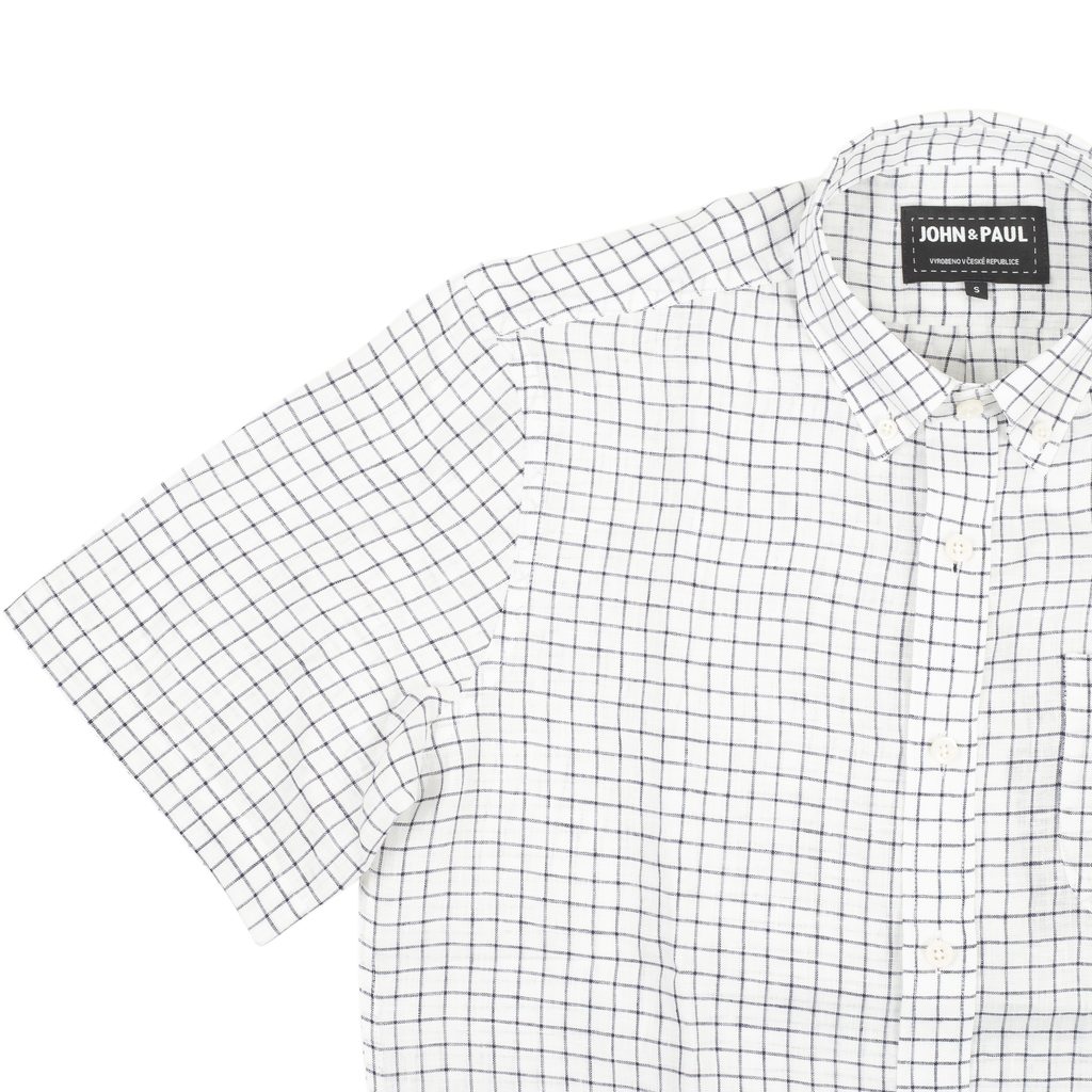 Nous avons mis le paquet pour notre collection estivale de chemises John & Paul. Voici donc la toute première série de nos chemises, dont certaines à manches courtes. Pour les barbecues estivaux, les vacances et les festivals, même nous, les puritains, considérons que c'est acceptable. Le reste est tout à fait correct. La chemise est dotée d'un col souple, d'une poche de poitrine et d'une couleur blanc crème entrelacée de carreaux noirs. Sa coupe est décontractée, c'est-à-dire plus ample et plus courte, ce qui la rend très pratique à porter en dehors du pantalon.