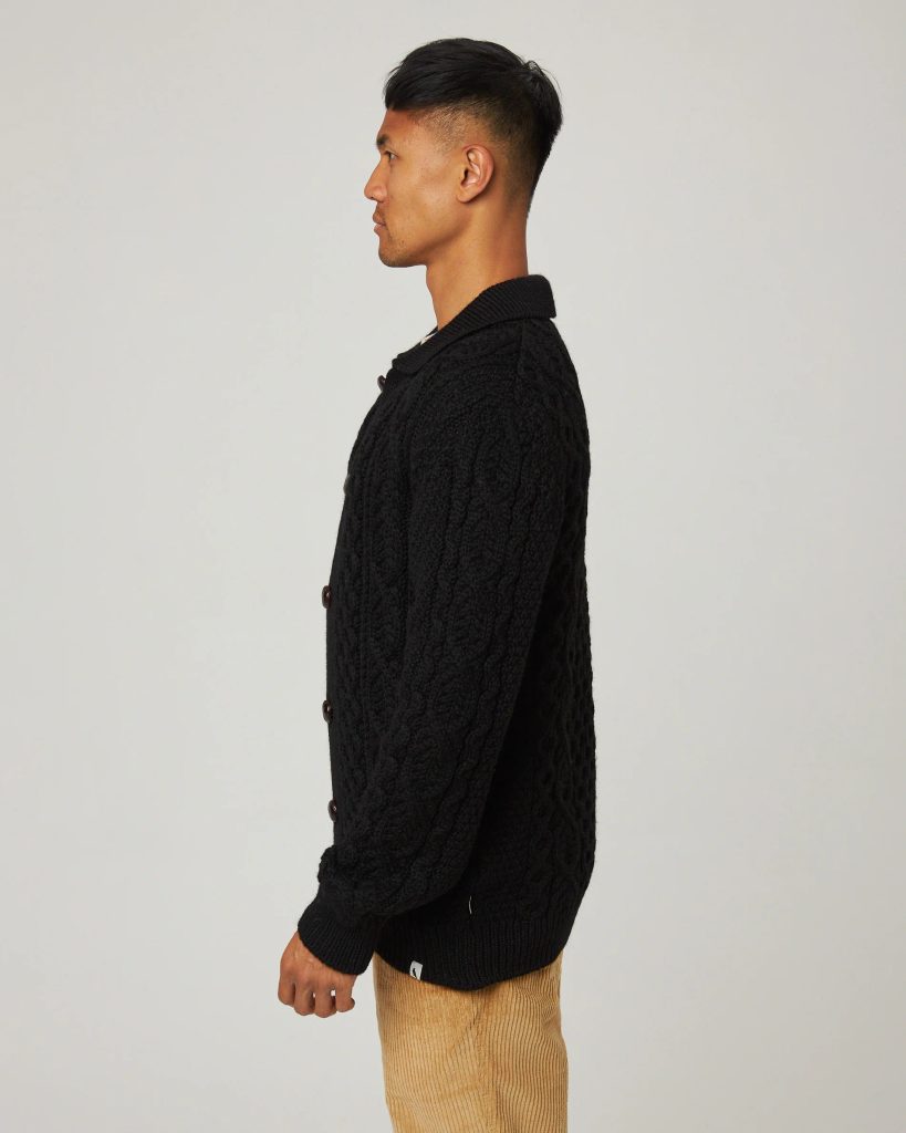 Ce cardigan en maille épaisse s'inspire des motifs arans classiques et de la tradition britannique du tricot à la main. Il offre une texture prononcée, une chaleur agréable et un look polyvalent qui se marie aussi bien avec une chemise en flanelle qu'avec un simple t-shirt. Il est fabriqué à partir de pure laine britannique, ce qui le rend naturellement chaud, résistant et indéformable. Le choix idéal pour les journées froides, lorsque vous souhaitez pouvoir compter sur un vêtement en maille vraiment solide.