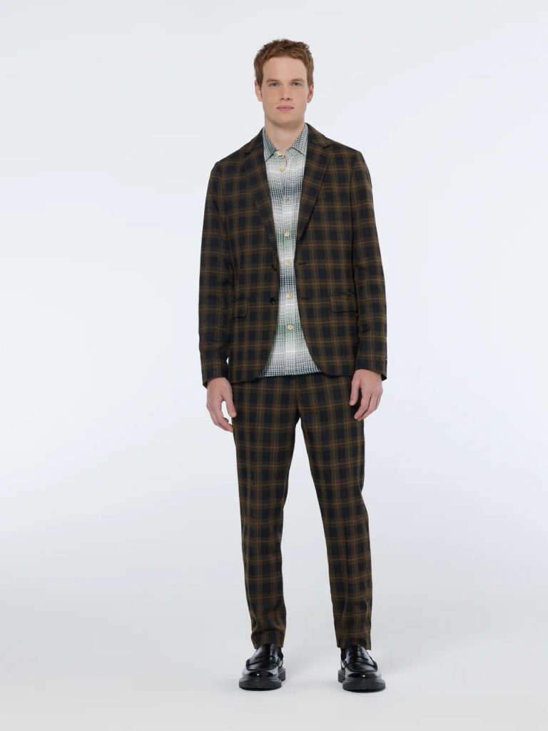 Ce blazer de loisir à simple boutonnage est dominé par un écossais décent, qui rappelle de loin le classique Prince of Wales Check. L'extérieur est en polyester, tandis que la doublure est en viscose. Il peut donc être porté toute l'année (sauf peut-être les jours les plus chauds) - la doublure est doublée au quart - jusqu'à la poche de poitrine - de sorte que la surchauffe ne devrait pas être un risque.