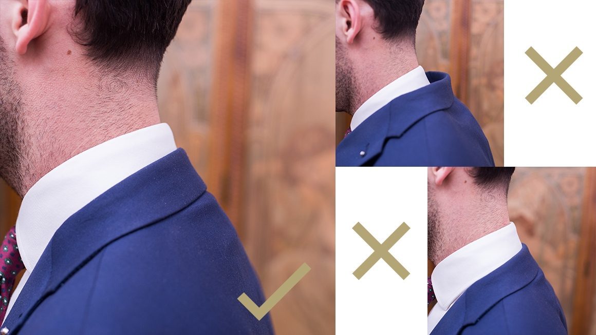 Pour qu’un col soit parfaitement ajusté, il faut avoir une bonne posture, bien droite. Bien sûr, personne n’est parfait, mais avec une “mauvaise posture” votre col va dépasser d’avantage. D’une marque à l’autre le type et structure du col ainsi que la structure du costume en soi peuvent changer. Il en va donc de soi que, si une marque ne vous convient pas pour ces raisons, il est parfaitement logique d’en essayer une autre. De plus, idéalement le col doit épouser la forme de votre cou sans qu’il n’y ait trop d’espace.