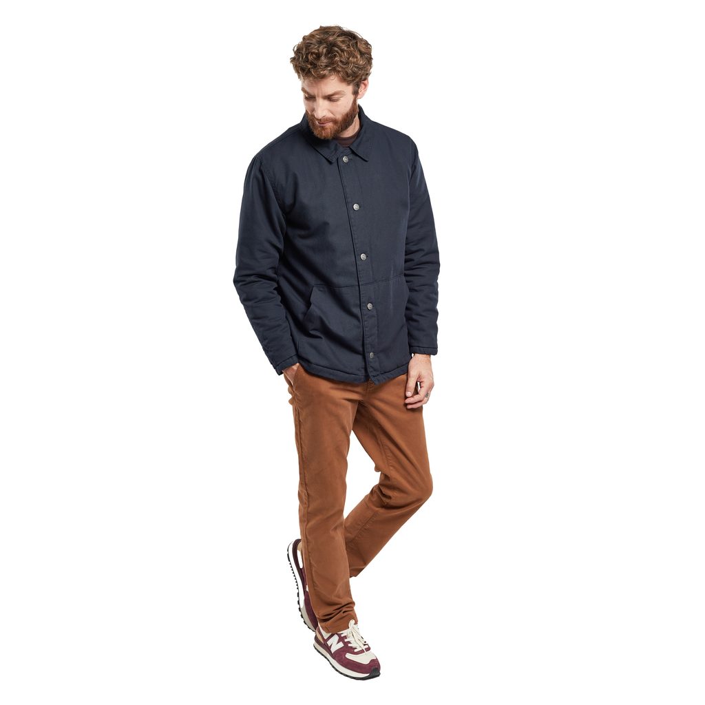 Elle se ferme avec des boutons de veste classiques et son col a une coupe classique. Vous trouverez deux poches ouvertes extérieures classiques et une (assez grande) poitrine intérieure sur le côté gauche. Dans cette finition hivernale, vous apprécierez également la doublure en polyester matelassé, qui vous gardera au chaud même contre les vents marins sauvages.
